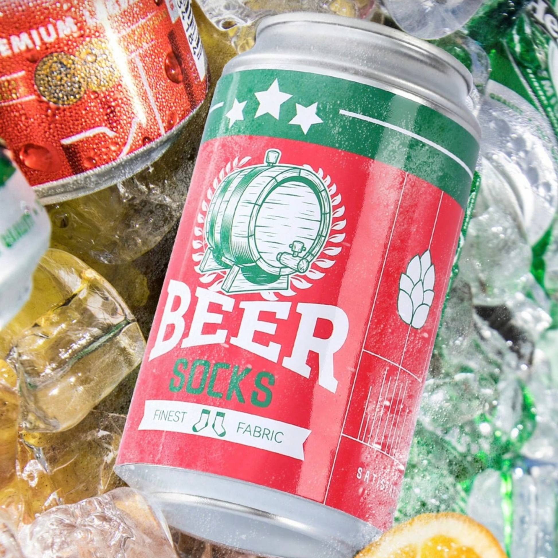 1 par de calcetines de media caña multicolor con diseño de cerveza en caja de regalo.